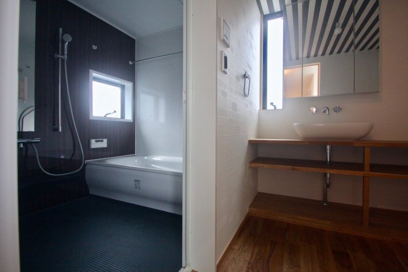 土地の購入前からご相談をいただき、完成引き渡しに至りました。気に入った土地がある時点からのご相談だったので、早速、現地確認を行い、良い土地であることをお伝えし、購入に至りました。小さな子供3人が安心して暮らせるよう、そして成長を見守れるよう、平面及び断面計画を配慮しています。それぞれのスペースは、コンパクトにまとめながらも、ちょうど良い距離感を保つことで、ゆとりを感じていただけるプランです。1階 LDKに配置されたキッチンとダイニングテーブルは、Coo Planningオリジナル。ステンレス、スチール、ナラ材、タイル。丁寧に素材を合わせています。