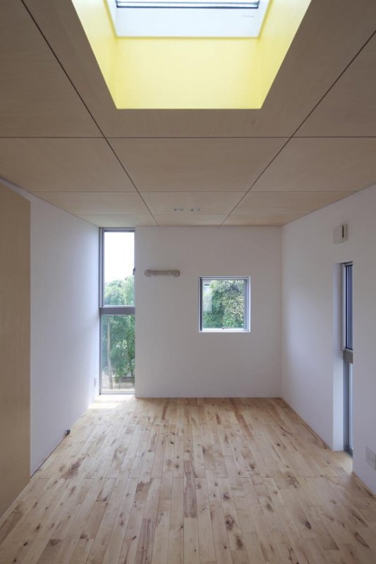 LDKには吹き抜けを設け、南側隣家の竹薮ごしの光を室内に呼び込み、また家の中心スペースとして2階のプライベートスペースと緩やかな繋がり感をもたらします。 木の構造材を部分的にあらわしにして使うことで素朴さと優しい雰囲気を持つ室内空間としました。 コスト的な制約がある中ですが、この家族らしい快適な住まいが実現できたのではないかと思います。