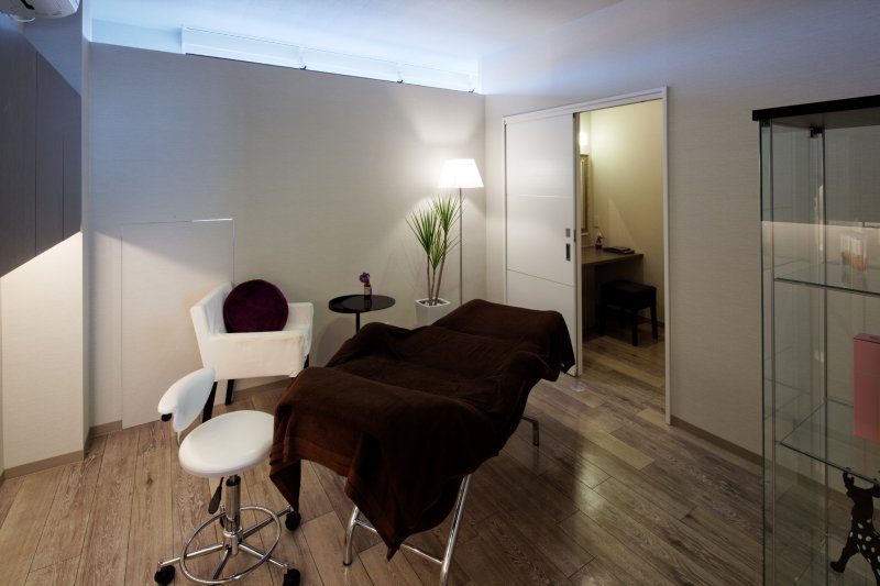 現在、岡山市内で人気のファション・雑貨・飲食店が多く出店するエリアへの新店舗です。テナントの向かいには大型レストランもあり、周囲はいつも賑やかな雰囲気がある。ビルの2階の為、お客の目に付きにくいと言うデメリットもあったが、道路面に大きなガラス開口があり、サロンイメージを伝えるオブジェサインを設ける事で、行きかう人々や車へのアイキャッチを狙いとしている。店内は、異なる素材の白を基調とし、同色空間の単調さに変化をつけている。白い背景をバックに多彩な色のネイルカラーが光る空間である。
