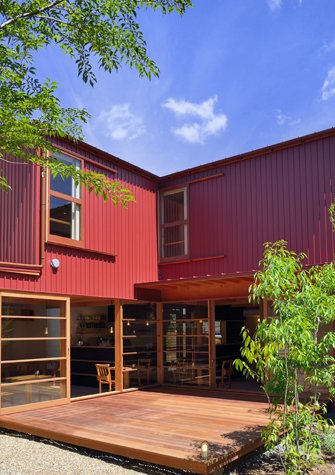 1階がカフェ、2階が住居となっているカフェ兼住宅です。住宅街にありがながら敷地いっぱいに植えられた雑木の樹木が心地よい居場所と時間を作り出しています