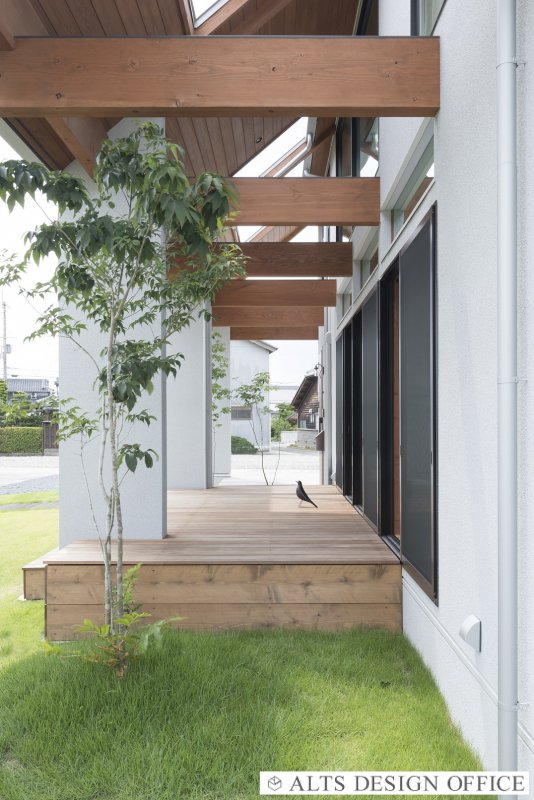 古くからの家の立ち並ぶ住宅地で、母屋に隣接して建てられた住宅です。