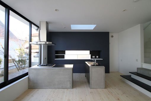 細長い敷地の両端に若夫婦住戸と親世帯住戸を中庭をはさんで配置しました。