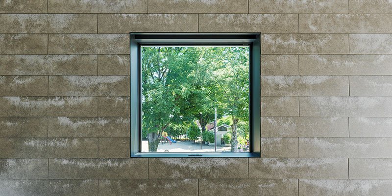 南側の川と西側の公園、自然や緑あふれる周辺環境と呼吸するような建築を目指した。