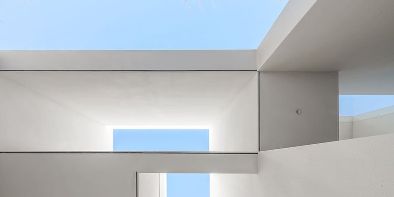 建築の中央付近に位置する三層の吹き抜けを中心に光と影が躍動し、建築内の至る所で清々しい時間が流れる。