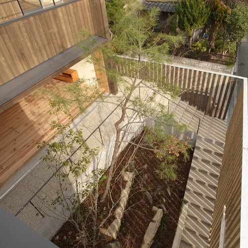 杉の格子の列柱にでゆるやかに街に対して開かれた中庭がこの家の大きな特徴です.