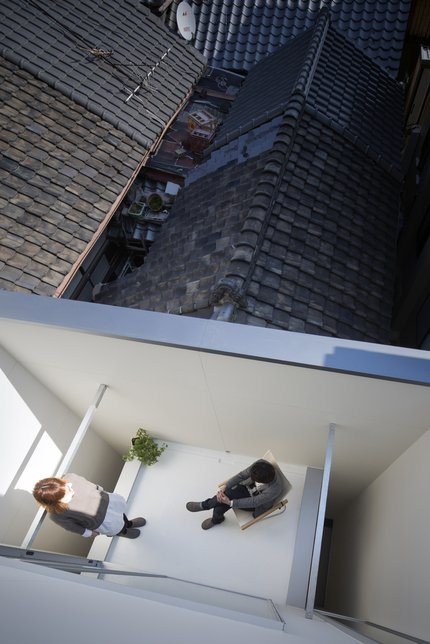 兵庫県尼崎市に建つ住宅です。住まい手は若い夫婦二人。夫はプロダクトデザイナー、妻はグラフィックデザイナー。住空間以外にそれぞれのアトリエを内包する事が計画上の条件でした。敷地は典型的な都市型の密集した住宅地で、限られた敷地の中で可能な限り合理的な計画案とする事で、これらの条件を解決しています。大きな建築ではなくても密度の高い空間構成とし、小さな宝石箱のような建築を目指しました。