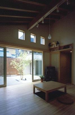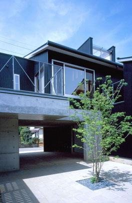 閑静な住宅街の高台に位置する2世帯住宅です。中庭を配することによって落ち着いた住環境を確保し、世帯間の緩やかな交流が図れるよう計画しています。