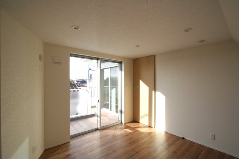 全体の構成として、南東角に設けた光庭へ、掃出し窓を介したバルコニースペースをL型状に取り囲むように各部屋を配し、また道路面側は、大きめの開口を規則的に設けたシンプルモダンな建築デザインとしました。