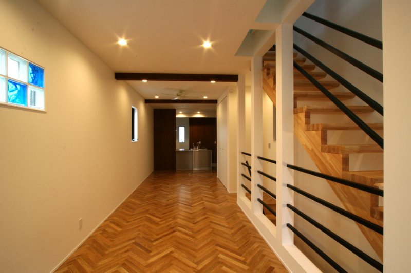 近隣地で飲食店を営むお施主様から、将来自宅でもお店を構えられるようにとの要望を受け、1階部分を店舗に転用できるよう、内部に構造耐力壁をなくし、間仕切り壁を撤去可能な建築構成としました。