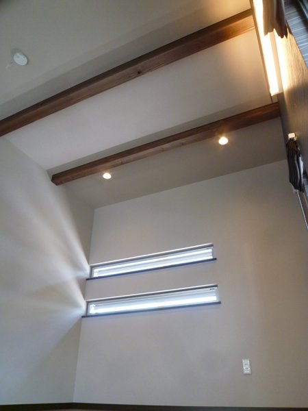 LDKは、屋根のこう配を利用して、勾配天井としながら梁を見せアクセントとしました。