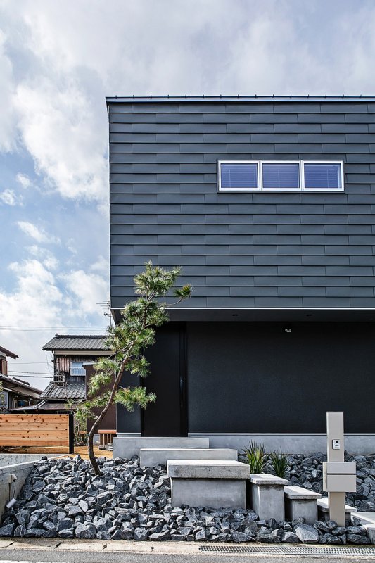 建物のブラックなイメージに合わせ、石の色も選定しました。